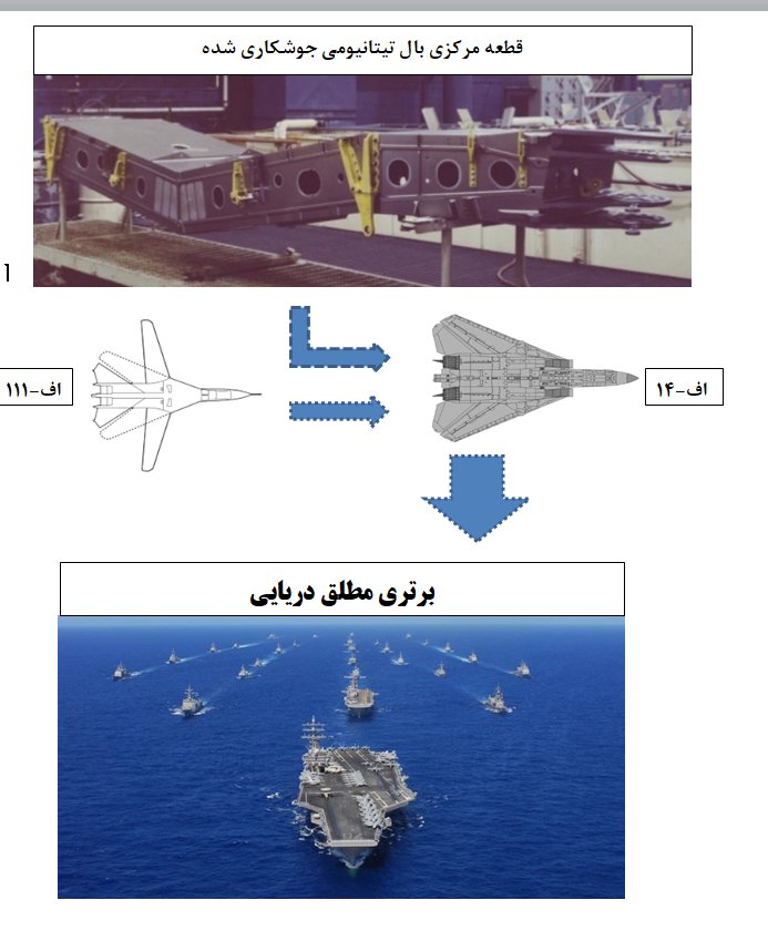به خاطربیاورید که حفظ منافع ملی و اقتداردریایی آمریکا از افزایش برد و مداومت پروازی جنگنده محافظ ناوگان می گذشت و در این نقطه بخشی از راه رسیدن از اف-111 به اف-14 افسانه ای و تامین آن اقتدار دریایی به ساخت قطعه ی مکانیکی این عکس گره خورده بود/۱۲.