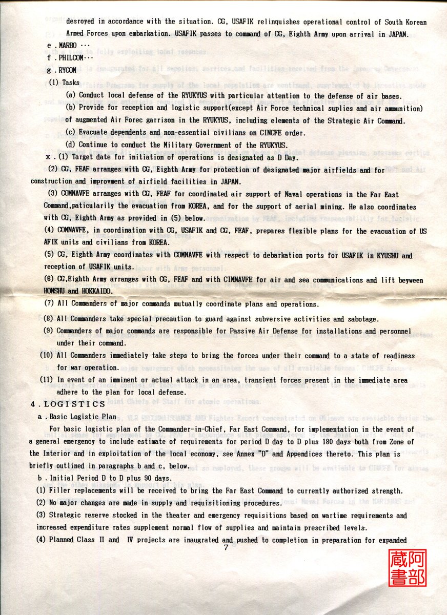 の時点で米国はソ連の北海道占領を認めていた。 つまりソ連としては「もう手に入れたも同然」と考えていたのである。 だから「ソ連「占領する準備が整いさえすれば実施するかも知れない」と米軍は考えていたらしい。 よって当初は占領目的で米第7師団を北海道に駐留させていたものの朝鮮戦争(続)