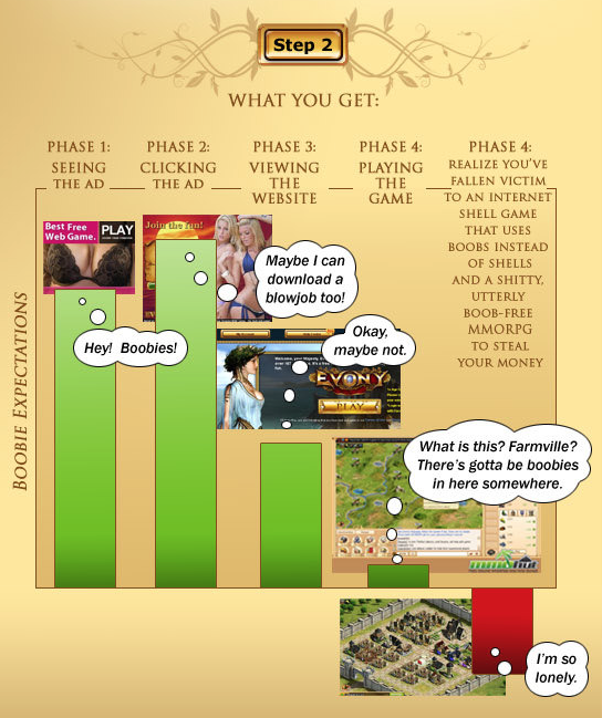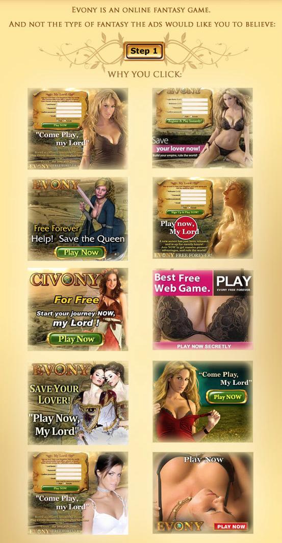 I dropped by evony dot com to see how they're doing, and it looks like they've since dropped the booby positioning. Or maybe that's just the site, and the ads are still doing it? I don't know
