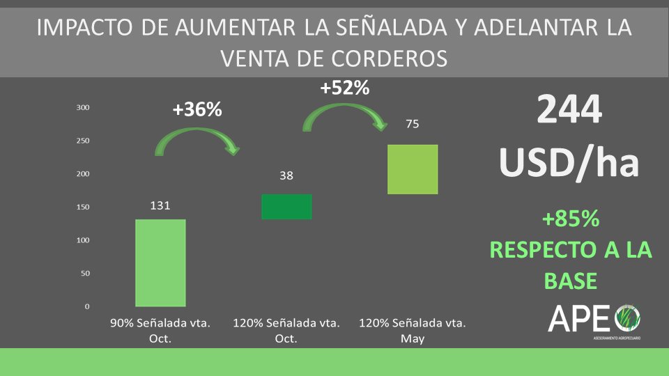 Asignación de recursos forrajeros + ajuste de carga de ovejas a encarnerar + cambios en momento de venta = aumento en la señalada y en la venta de corderos. 4/7