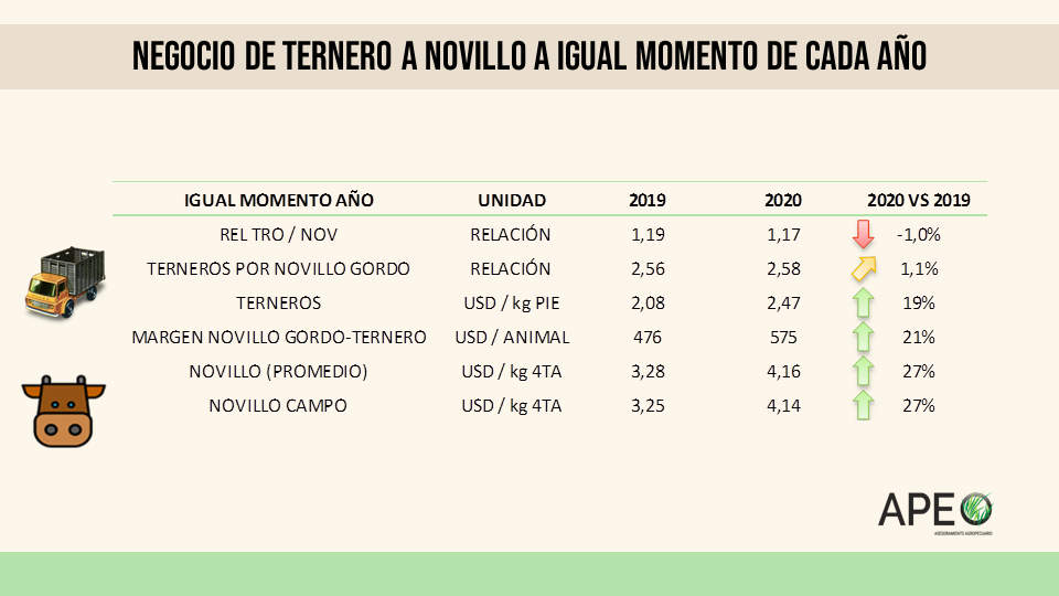 #MonitorAPEO Negocio de ternero a novillo gordo. Las relaciones ternero / novillo casi no se modificaron, los aumentos en los precios de ambas categorías significaron un aumento del 21% en el margen del negocio. 2/3