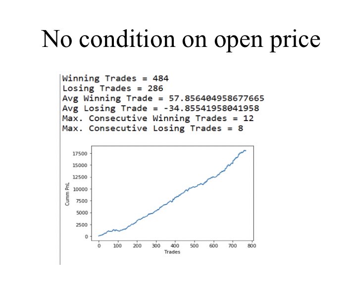 After such rigorous backtesting. I am more selective in my trading. I know why the winners and winners and losers are losers. I try to avoid days where I have low prob of winning. Trading is all about having an edge and constantly exploiting it. #backtest #OptionsTrading