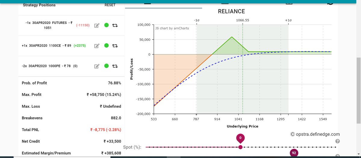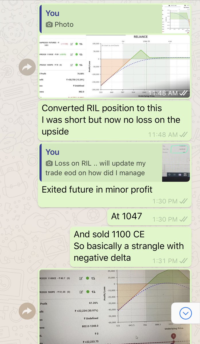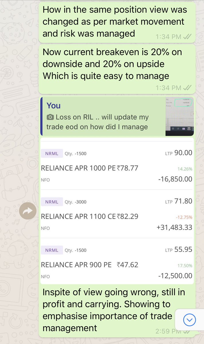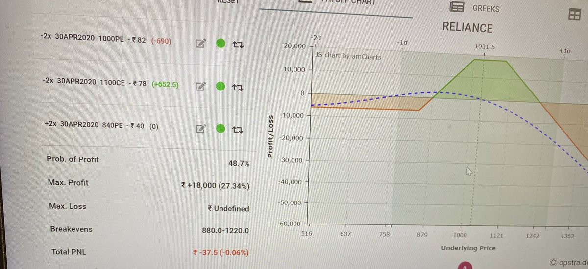 But RIL again started coming so I exited my future at cost and sold 1100 CE to convert into a slight negative skewed and brought downside protection at close to convert my postion to this. See the breakeven 880 to 1220 That’s how I manage my trades (End) #trade #management