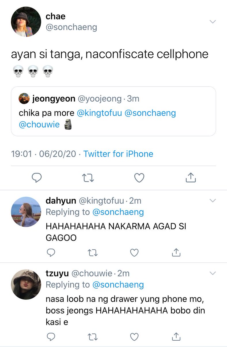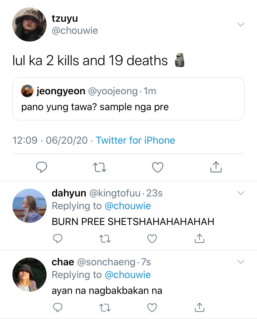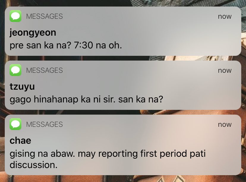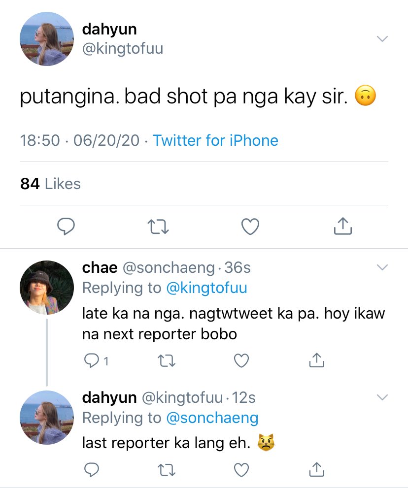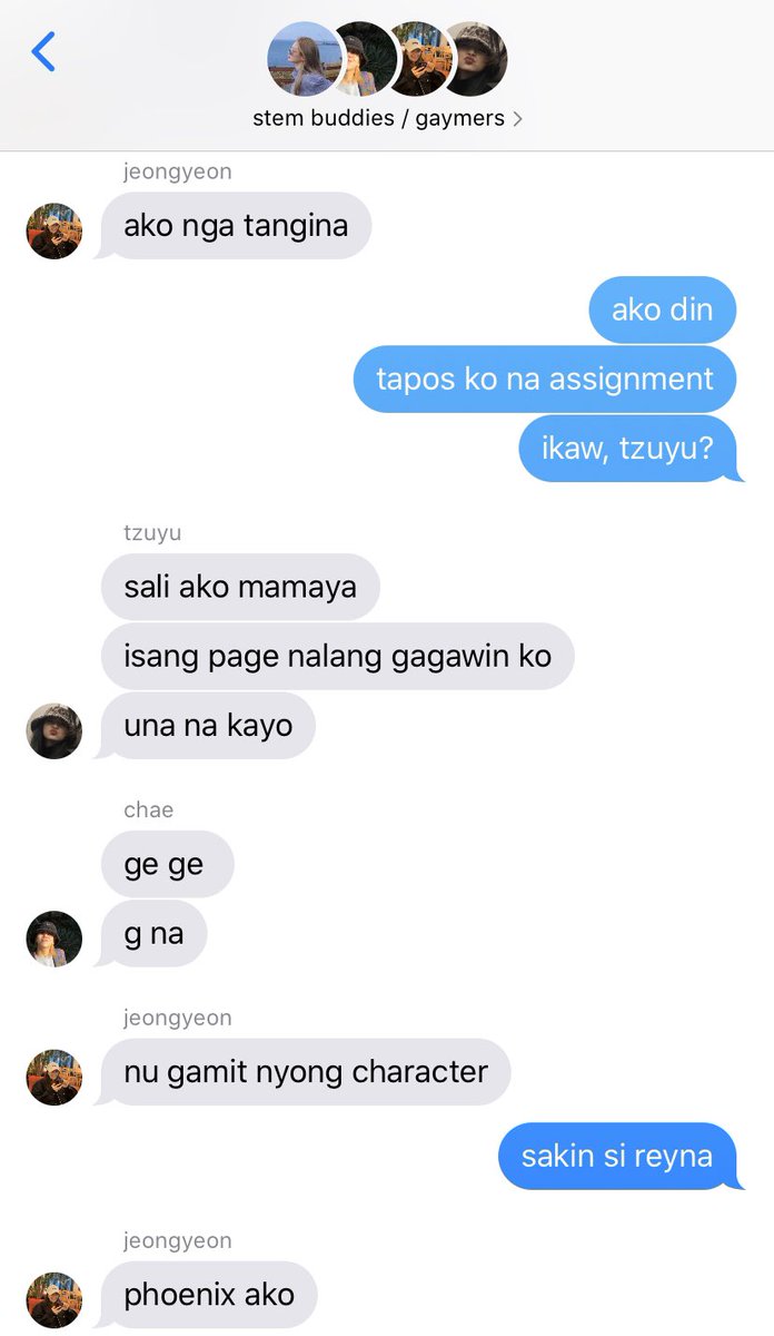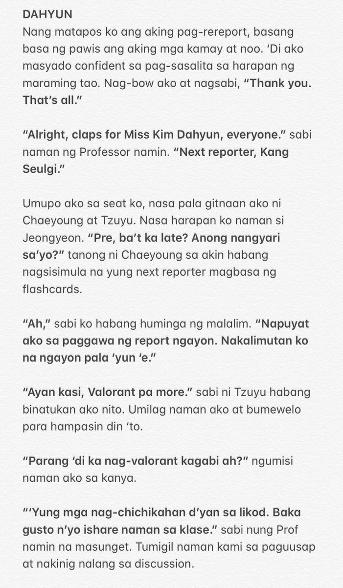 MAIN CHARACTERS: Kim Dahyun — STEM — gaymer — joker ‘to — matalino den — medyo conyo pero bihira lang — frenemy ni sana — “tae ka ba? kasi taena mo <333”