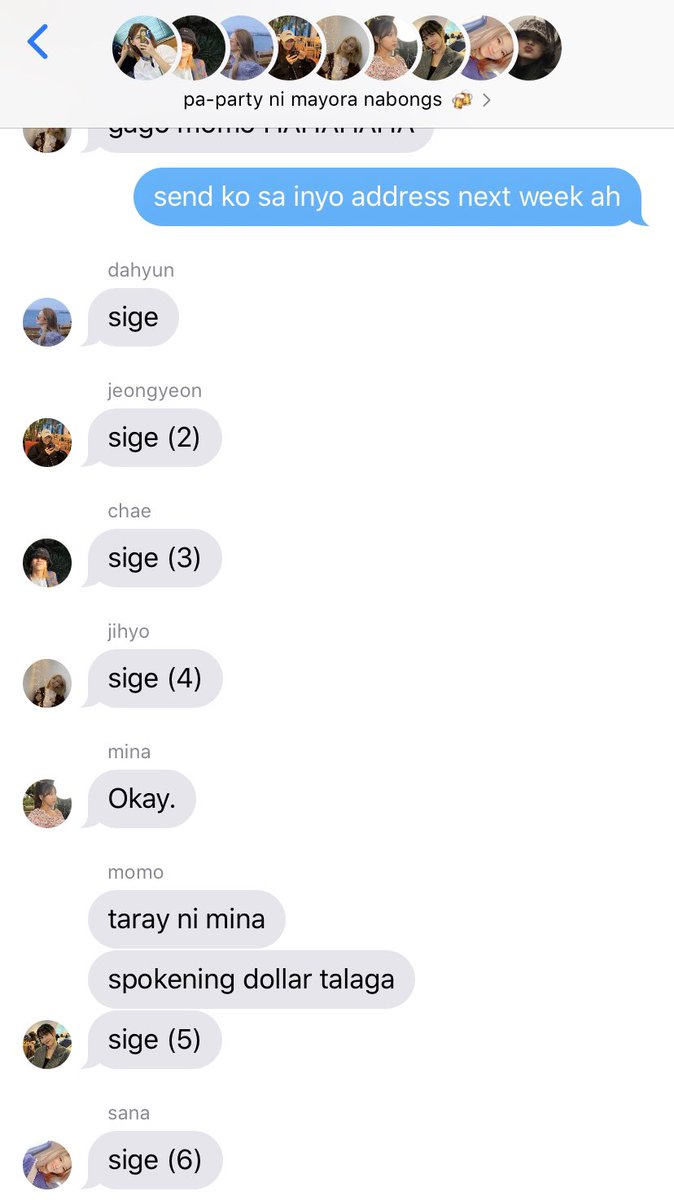 Myoui Mina — HUMSS — kaklase ni sana — spokening dollar ‘to, wag kayo — napaka-talino — “what do you guys want to eat? i can libre you.” — ritsked