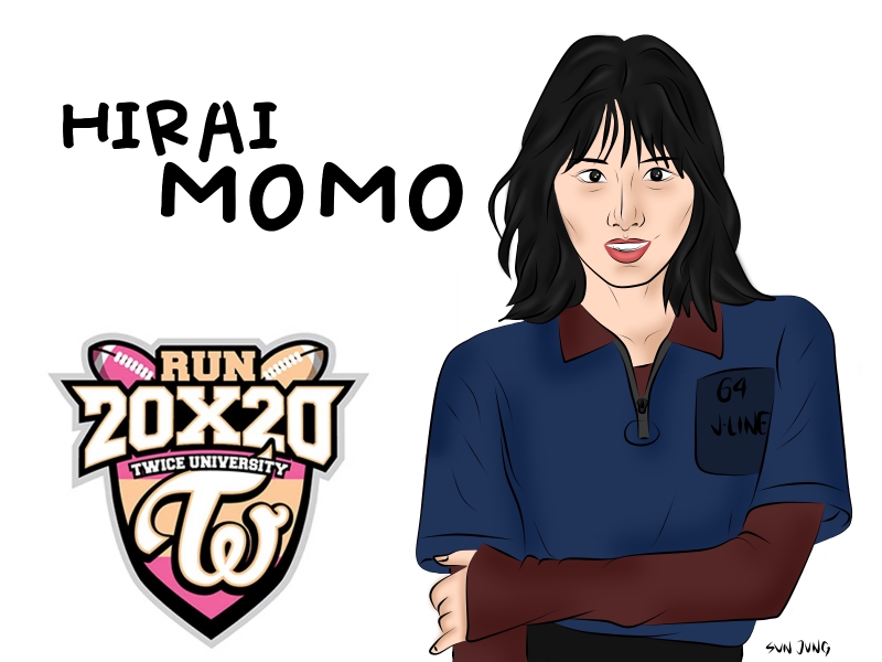 Character reveal #3 HIRAI MOMO -23 years old -Bachelor of Fine Arts (Dancing) -In a dance group named "J-Line" alongside with Sana and Mina, but the group is currently inactive -Dance Machine -Facts: Loves jokbal and soju -Classmates with Minatozaki Sana