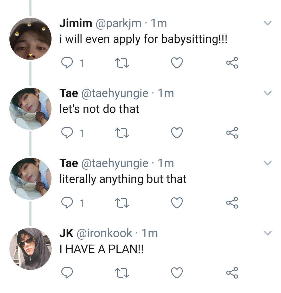 While Jimin is trying, and quite frankly, struggling to make his drink– he's debating on whether or not to say that he is a big fan. This might be the only chance he could get, so he breathes. "I really like your songs, by the way. And your voice... I really like your voice"
