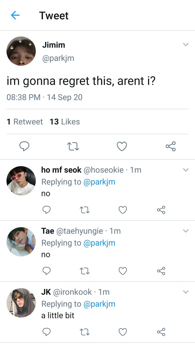 "Oh," Jimin feels a bit offended. He actually took his training very seriously. He knows how to mix drinks! "Do you have a specific ratio? Tell me, and I'll make another one for you" He even learned the 'customer voice even the customer is being an ass voice' during his training