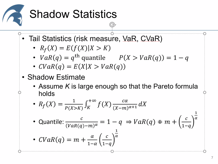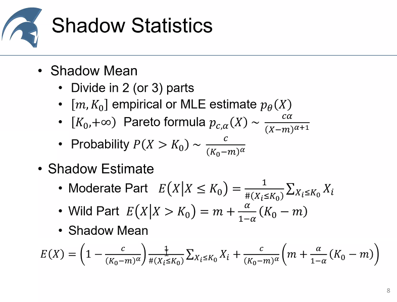 One technique (Tail Index Hill's Estimator): If X is Paretian, P will look as an exponential. Look at the underlined formula: in a way this technique looks like a linear regression... 19/n