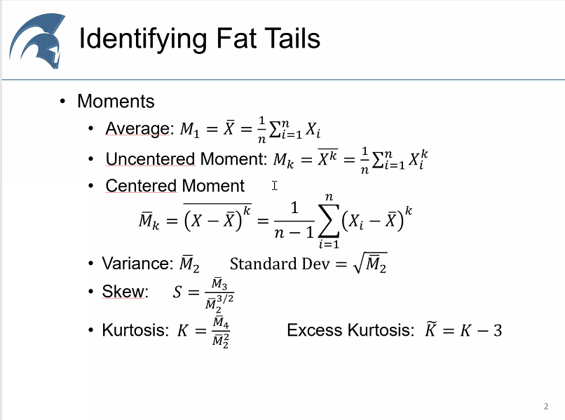 kappa is the Pareto estimator. If it is below alpha, we have no average, if it is below 2, no variance, if it is below 3 no skew, below 4 no kurtosis... 23/n