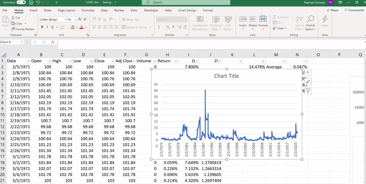 We start with a Yahoo Finance extract of the NASDAQ data from 1971 till today... 2/n