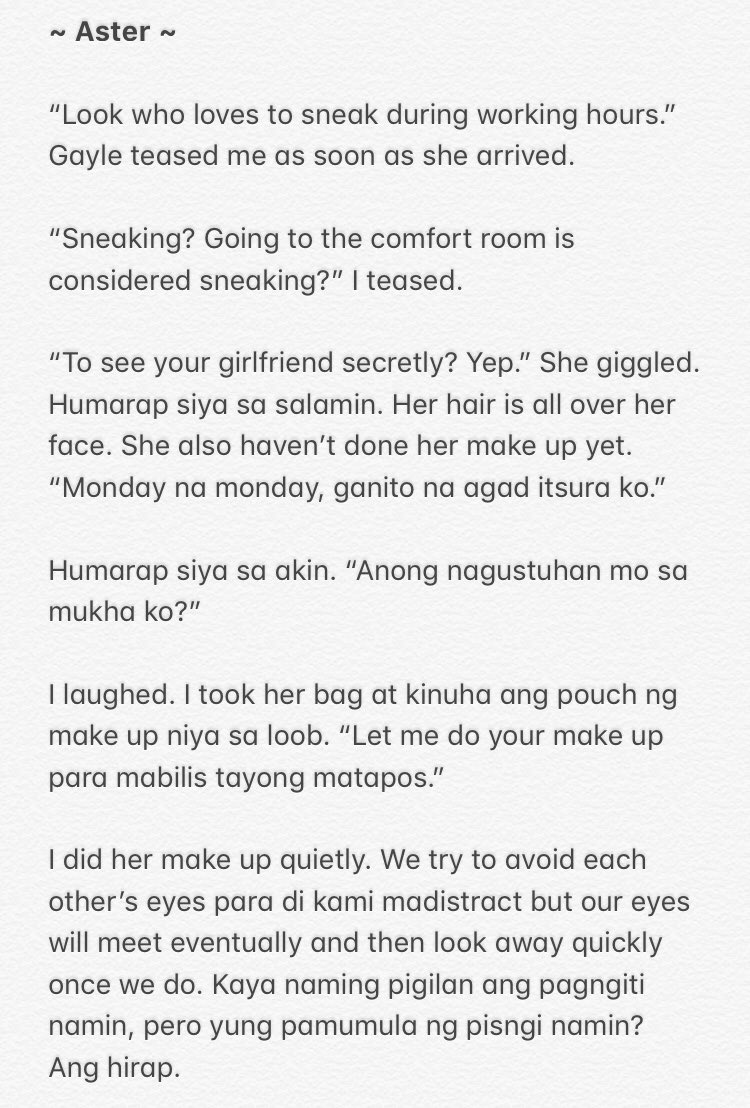 π 717 β Gayle and Aster π« a/n: Laraβs morning be like: coffee at mga empleyadong nagmo-momol sa CR lmao