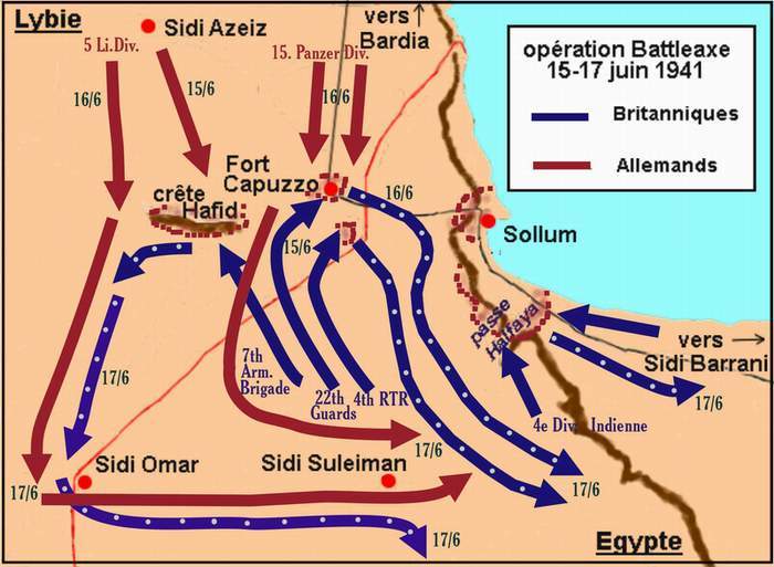 WWII en Twitter 15-Junio-1941 OPERACIÓN BATTLEAXE Segundo intento🇬🇧,y cn resultado fallido,para liberar Tobruk dl cerco dl Afrika Korps d Rommel. El comandante d las fuerzas🇬🇧era el Gral. Beresford-Peirse,q contaba con 20.000💂🇬🇧.Rommel contaba cn 13.000💂🇩🇪(15ª División Panzer).