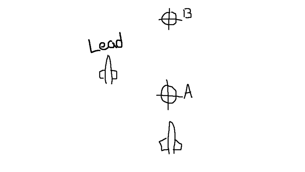 #2 Fly towards a distant point, but use the REAL point for throttle. One of the biggest difficulties of formation flight is throttle management to stay in position. The naive solution simply tells a plane to fly to A, but this has two major drawbacks!
