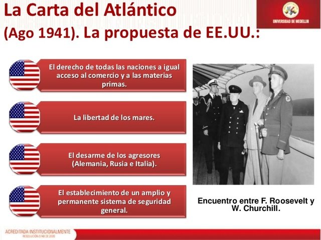 WWII en Twitter 14-Agosto-1941 CARTA DEL ATLÁNTICO En el Atlántico(Terranova). Roosevelt y Churchill,a bordo dl🚢🇺🇲USS Augusta🎞️hacen público ls principios sobre ls cuales ellos fundan sus esperanzas en un futuro mejor para el mundo y q son comunes a la política nacional d 🇺🇲y🇬🇧: