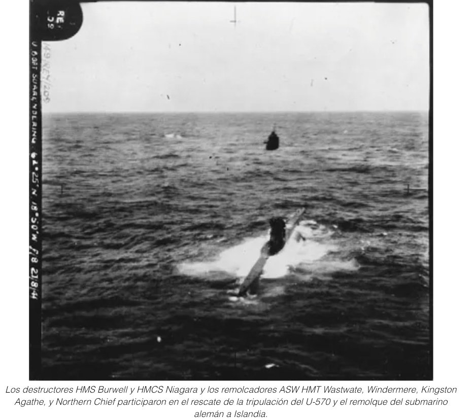 WWII en Twitter 27-Agosto-1941 En la costa d Islandia. El submarino U-570🇩🇪cae en manos🇬🇧.Tras emerger a superficie,un✈️🇬🇧Hudson d la RAF lo ataca cn cargas d profundidad ocasionándole tales daños q no ha podido sumergirse d nuevo.El U-570 se rinde y su tripulación destruye los⬇️