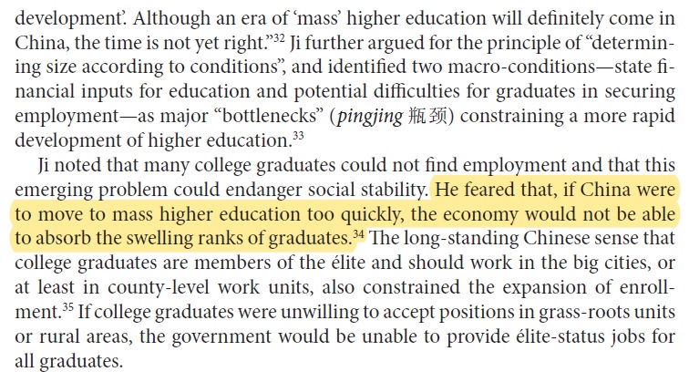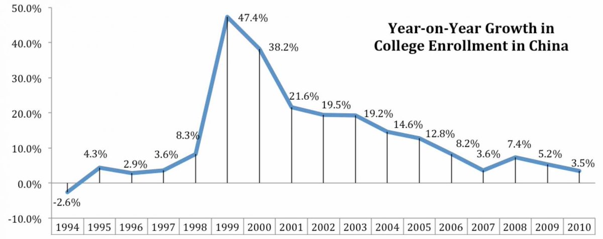 But Ministry of Education officials were strongly opposed to the idea of dramatically increasing college enrollment. It's interesting looking back at how presciently at least one of these officials predicted what would end up happening... https://www.journals.uchicago....