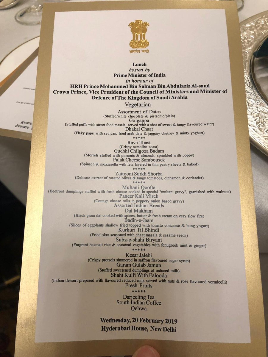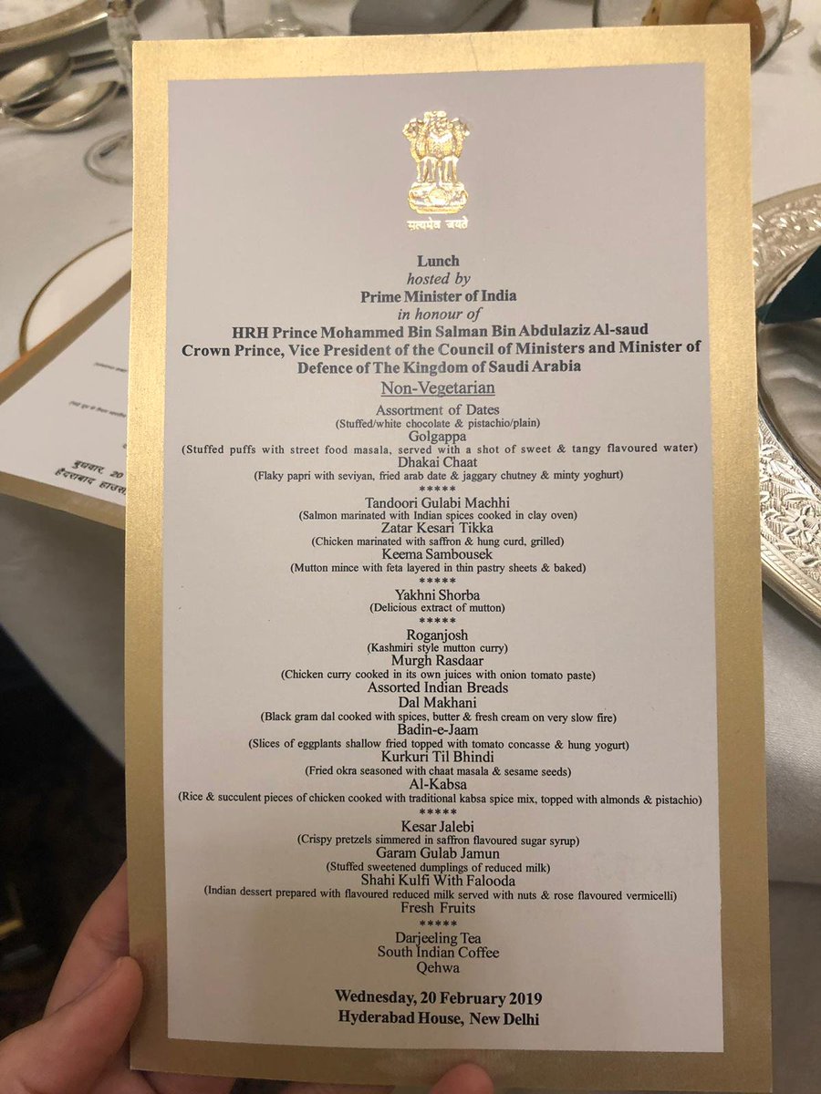 @cvkrishnan Are these catered by 5* hotels or there is a ICS - indian cookery service also? Rashtrapati bhavan also has lavish banquets for head of states… i have taken the tour, the dining hall is middle ages european palace.