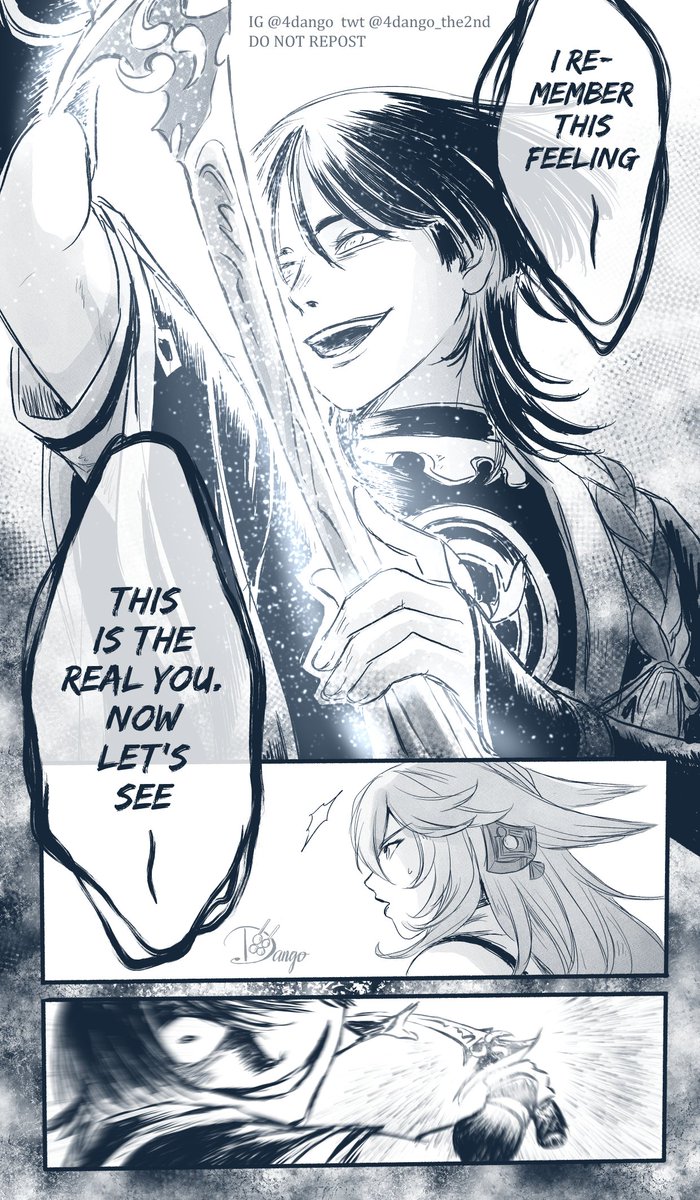 @4dango_the2nd Holy shit why have I never before considered the sheer awesomeness of someone ELSE drawing out the chest sword!! Scaramouche in particular...wow whatever happens in canon will never live up to this 😳