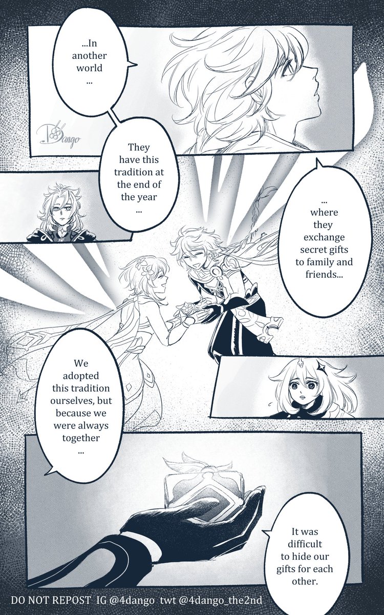 @4dango_the2nd Dango, imma cry again JSDHKFJHDSF- aside from that, thank you for the holiday feels gift and the way you draw Lumine is very beautiful shdjfhkds 😭💕