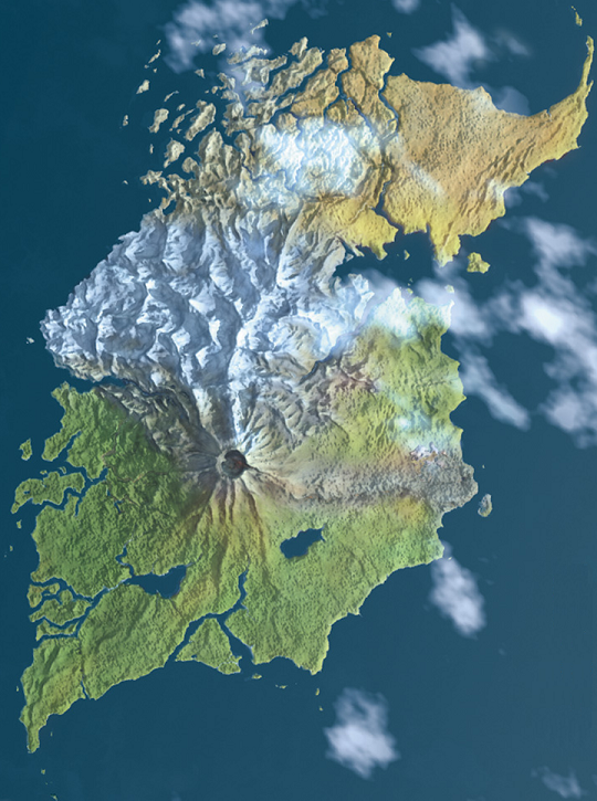 Protegida por Toa Likhan (único superviviente de un antiguo equipo de Toa) y gobernada por Turaga Dume, esta ciudad está iluminada por dos "soles" y habitada por archivistas, astrónomos, ingenieros y forjadores de mascaras. Vakama es un matoran que trabaja en los altos hornos.