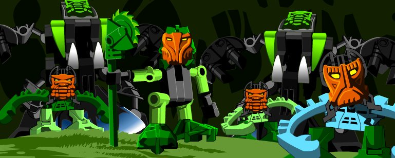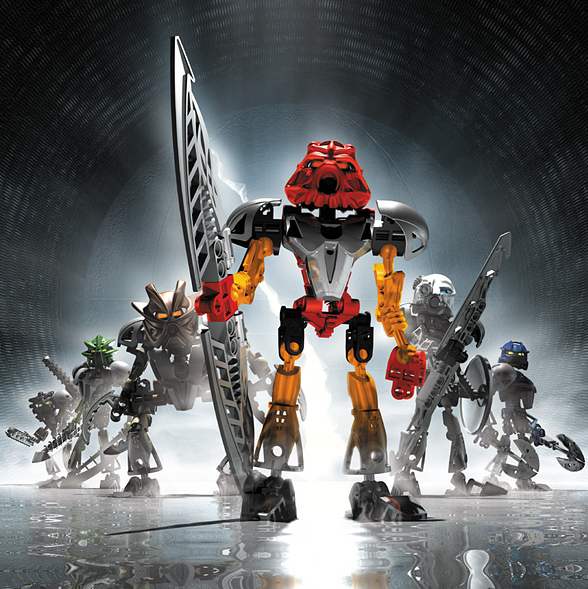 Así que los Toa se dedican a defender a sus pueblos mientras buscan los Mcguffins que les darán a cada uno los 6 poderes kanohi. Por el camino conocen a 6 matoran que actuarán como sus sidekiks/Contactos con los koro De izq a der: Nuparu, Hewkii, Hahli, Jaller, Kongu y Matoro.