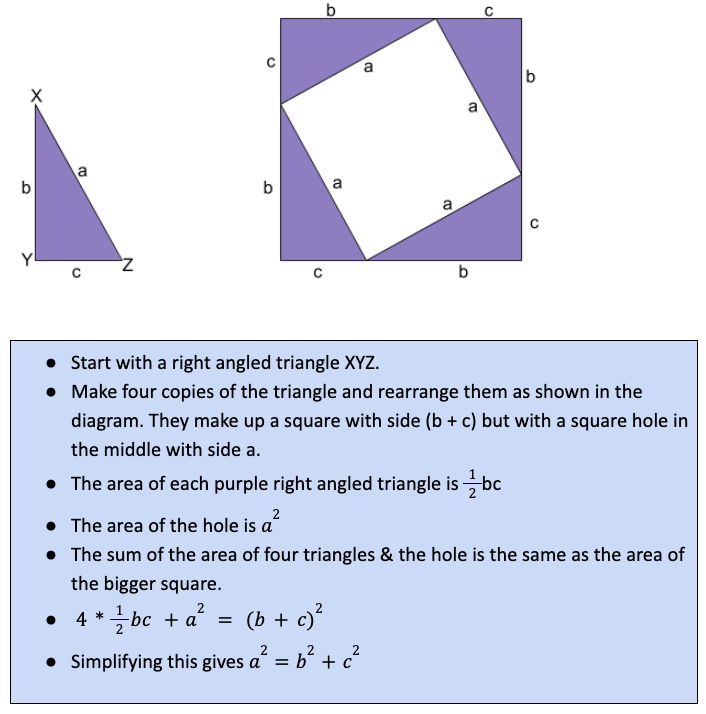15/N: Katyayana Sulba Sutra 2:12, reinforces the description of the theorem using a square: “In a square a diagonal produces an area, which is double that of its side”