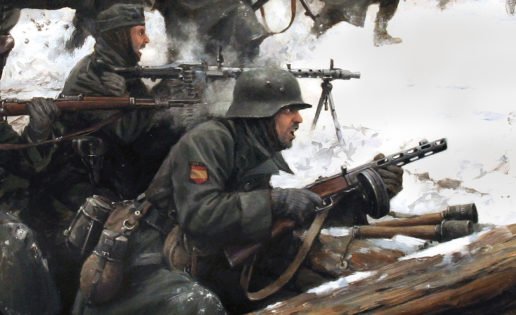 WWII en Twitter 23-Ene-1942 Tras 12 días d marcha,los💂🇪🇦de la División Azul que han cruzado el Lago Ilmen,abriéndose camino entre las líneas sovieticas,establecen contacto con las tropas🇩🇪a las q tenían q auxiliar en Vsvad. De los 206💂🇪🇦 q partieron,más d 100💂mueren congelados