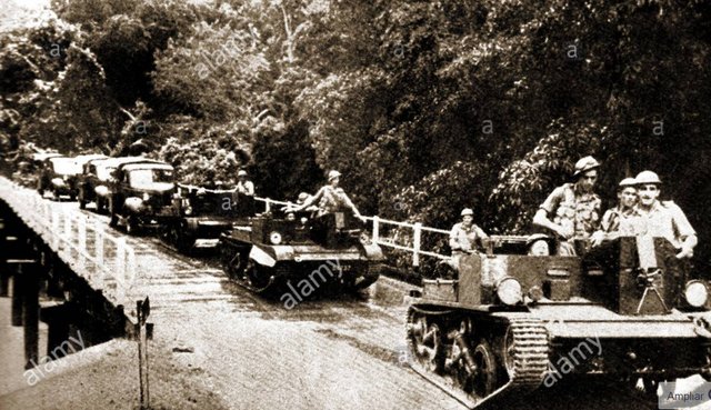 WWII en Twitter 10-Ene-1942 El 25ºEjército🇯🇵,al mando dl General Yamashita🎞️entra en la ciudad d Kuala Lumpur,en la Malaya🇬🇧.Mientras💂🇯🇵desembarcan en la isla d Tarakan en las Indias Orientales,y ad+ ✈️🇯🇵inician ataques aéreos a Singapur,con el objetivo d asegurar la invasión🇯🇵.