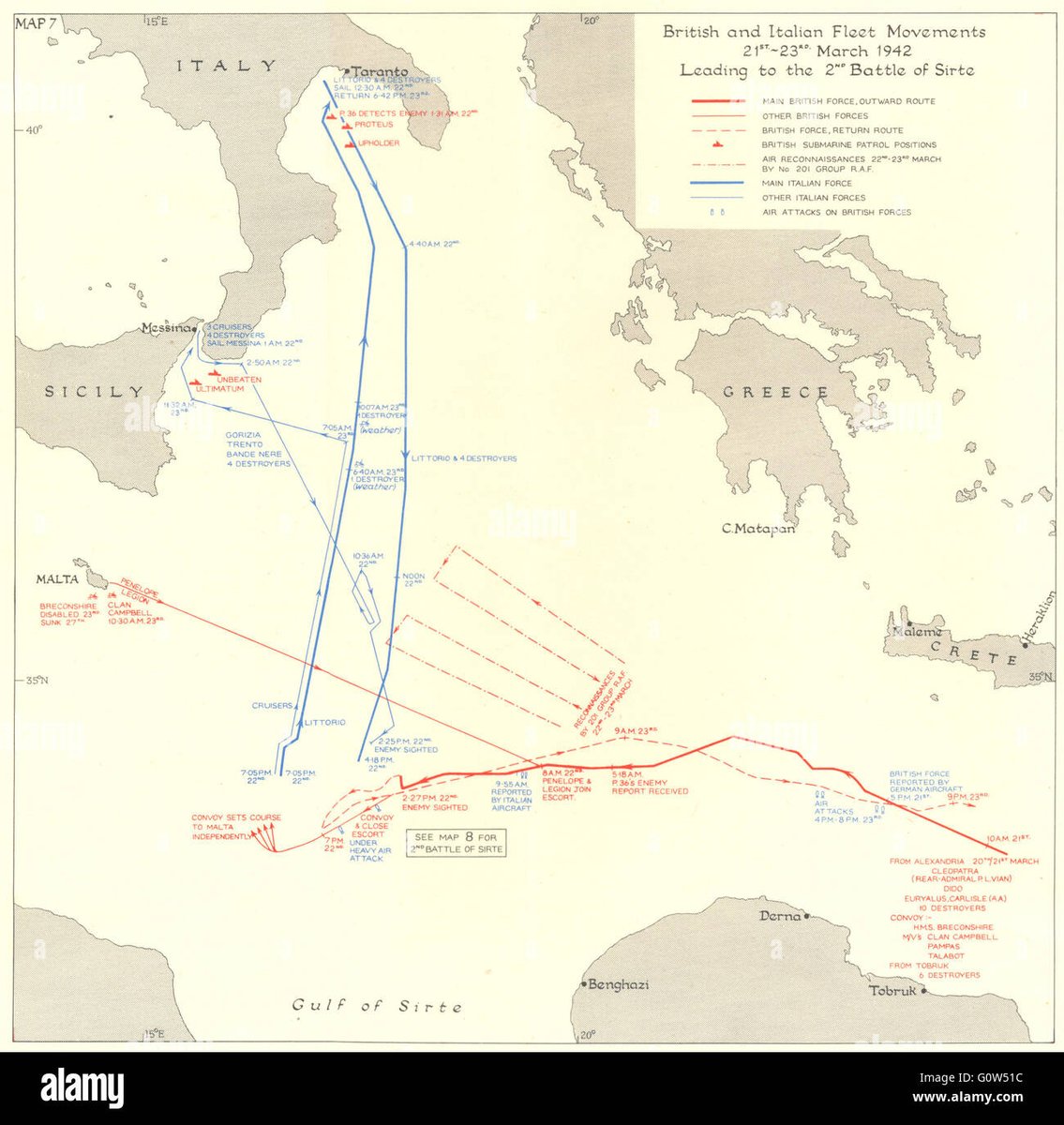 WWII en Twitter 22-Mar-1942 BATALLA DEL GOLFO DE SIRTE: Un convoy d🚢🇬🇧q había zarpado d Alejandría con destino a Malta es localizado por la flota🇮🇹.Ls🚢mercantes🇬🇧y algunos🚢de escolta intentaron huir mientras q el resto atacaron a ls🇮🇹.La batalla dura 2hrs,sin un claro ganador.