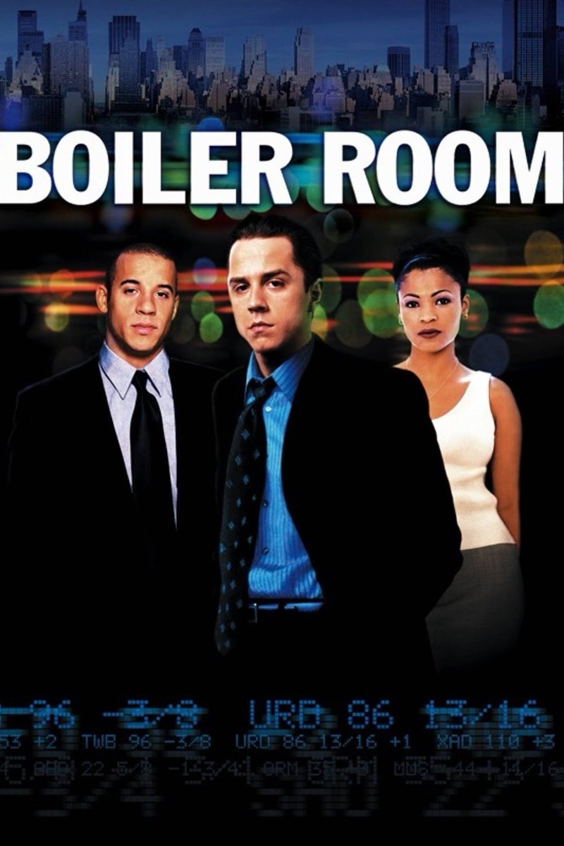 Boiler Room A college dropout gets a job as a broker for an investment firm, which puts him on the fast track to success. However, success clouds his judgment, drawing him into a world of corruption and greed.