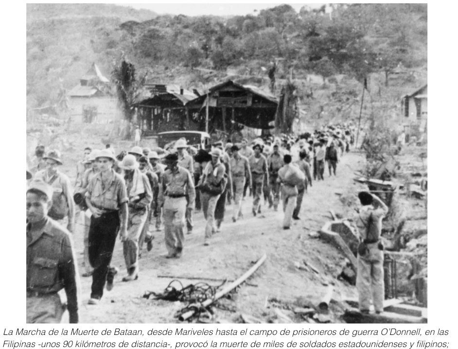 WWII en Twitter 25-Abril-1942 FINALIZA LA MARCHA D LA MUERTE D BATAAN: Los supervivientes d la Marcha comenzaron a entrar al campo d O'Donnell,al otro lado d la península donde habían partido.En el camino,entre unos 15000 y 18000💂🇺🇸habían muerto a manos d🇯🇵(d un total d 70000💂)
