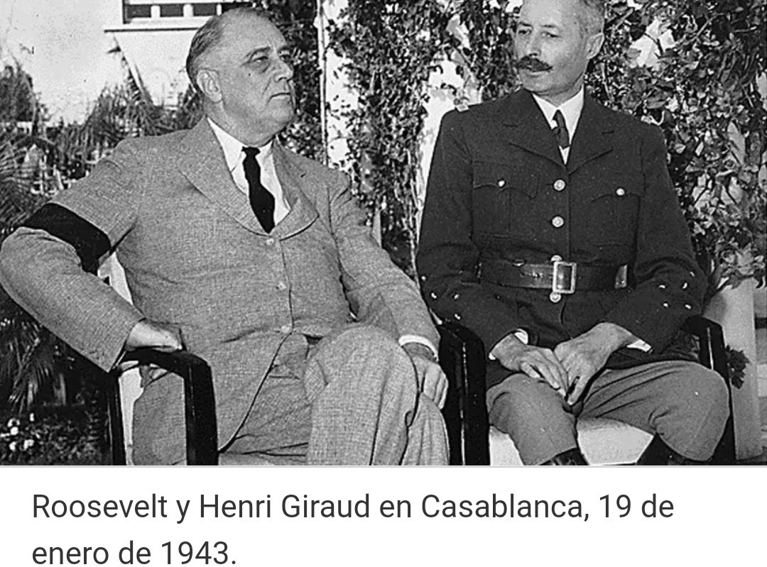 Giraud se posicionaba como el jefe d ls partidarios d luchar contra ls🇩🇪y su ocupación,intentando convencer a Petain y compitiendo con De Gaulle para liderar la resistencia🇫🇷.A partir d noviembre d 42,encabezó el Alto Comisariado en África y fue su jefe civil y militar en Argel👇