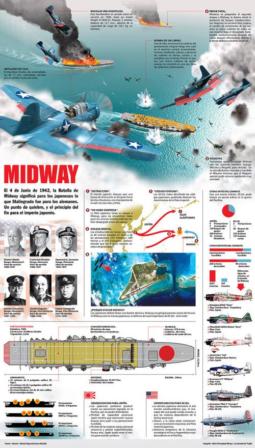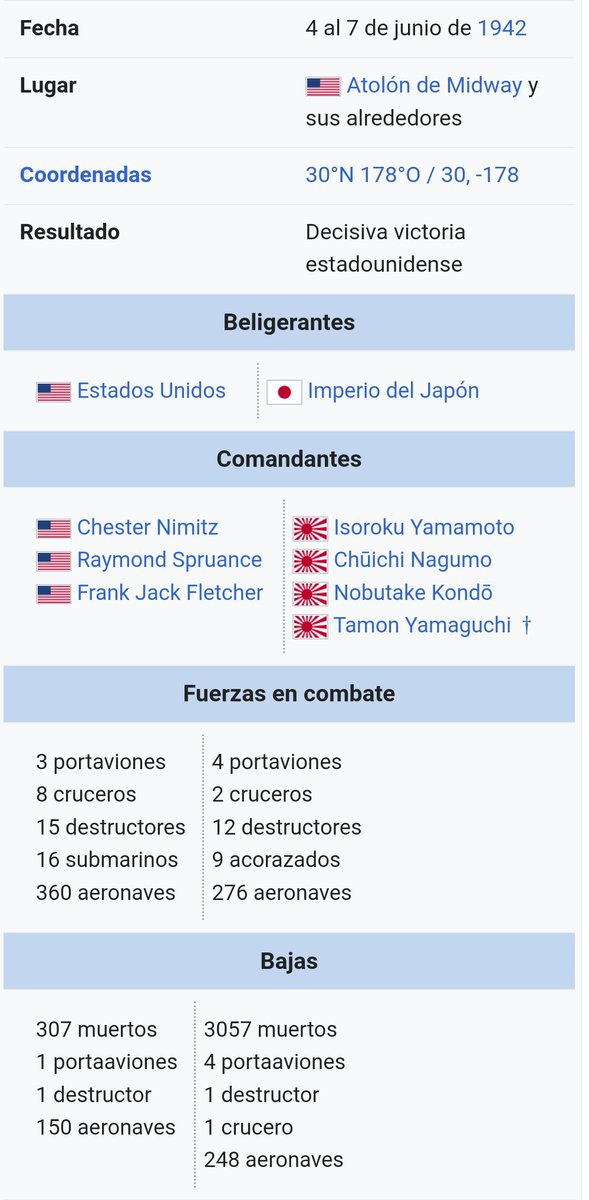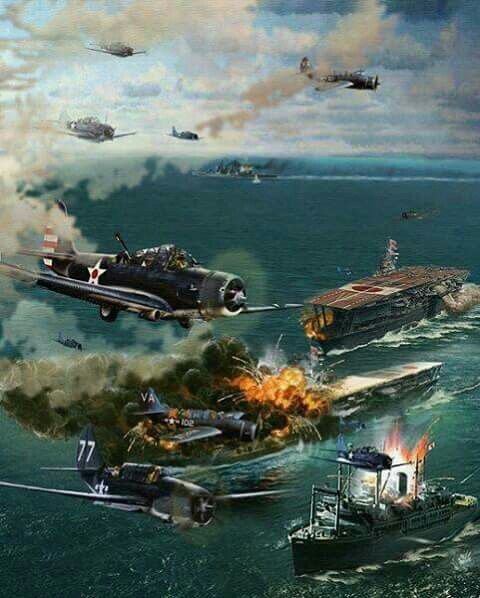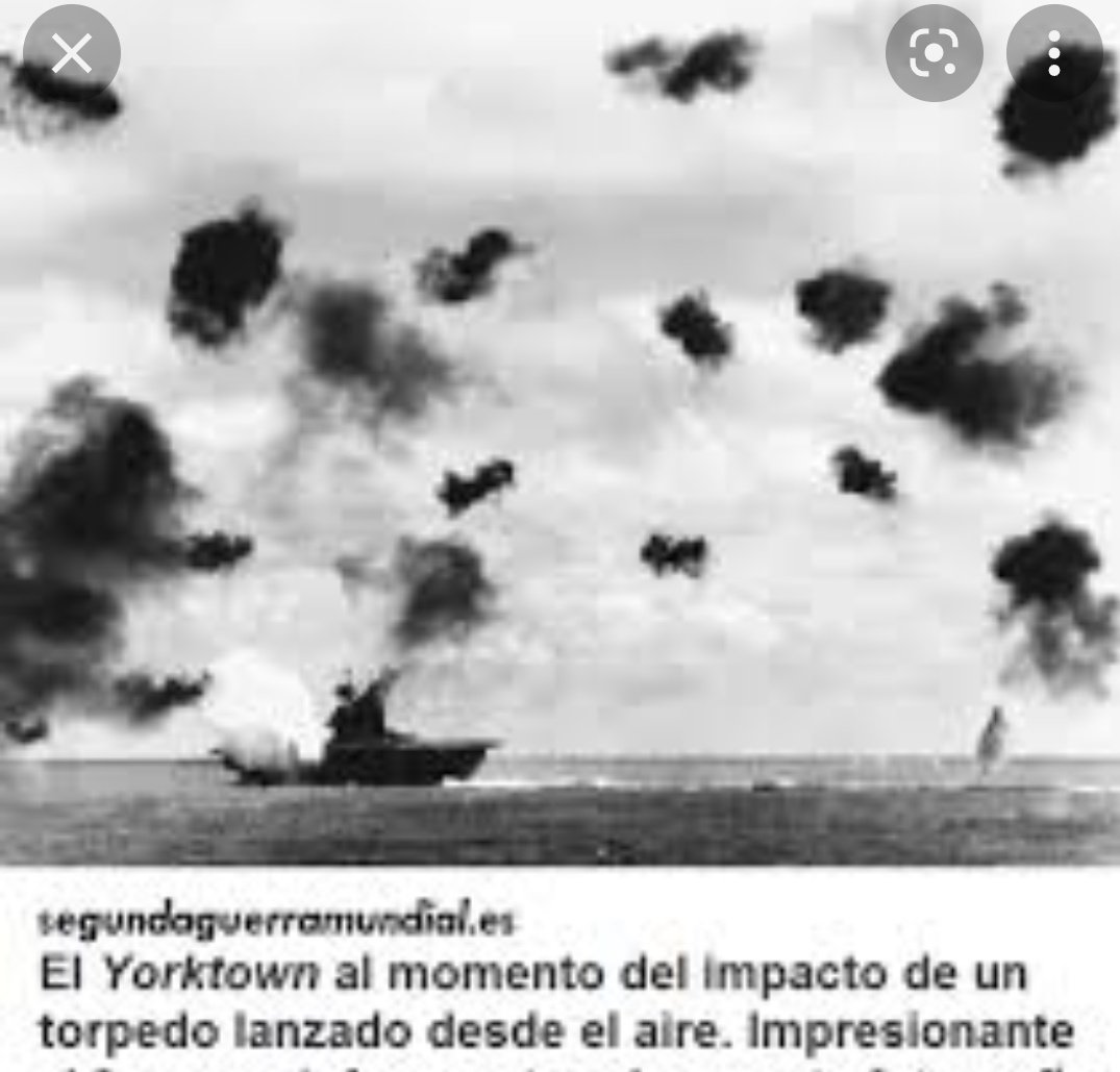 Otro escuadrón d✈️🇺🇸se ocupó d un tercer portaaviones🇯🇵.En apenas 6 minutos,tres d ls cuatro portaaviones🇯🇵estaban en🔥y su hundimiento era cuestión d tiempo. El portaaviones🇯🇵restante contraataco y sus✈️persiguieron a ls✈️🇺🇸en retirada,encontrando así al portaviones Yorktown🎞️👇