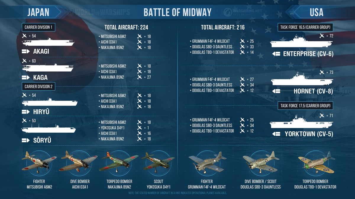 WWII en Twitter 4-Junio-1942 LA BATALLA DE MIDWAY 🇺🇸🇯🇵: A primera hora,la flota🇯🇵compuesta por 4 portaaviones,1 portaaviones ligero,14 cruceros,32 cazatorpederos, 9 acorazados y unos 450✈️atacó la isla de Midway,sin éxito.El almirante Nagumo estaba preparando una segunda oleada👇
