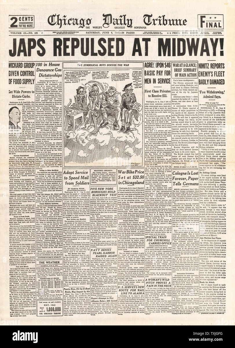 WWII en Twitter 5-Junio-1942 BATALLA D MIDWAY Ls fuerzas🇯🇵en Dutch Harbor recibieron orden d abandonar la misión y unirse en ayuda d ls restos d la flota🇯🇵q estaban en Midway. Los✈️🇺🇸 intentaron localizar a ls🚢🇯🇵(sin éxito).Yamamoto decidió continuar con su plan d ocupar Midway.