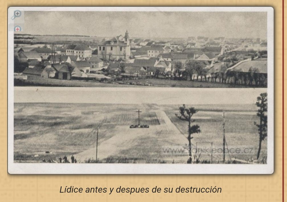 había desaparecido para la historia. Mientras los nazis trataban de disimular la mayor parte de sus crímenes,sobre la destrucción d Lídice,decidieron hacer un documental q fue difundido abiertamente,como muestra de las consecuencias que tenía el asesinato d un jerarca nazi. 😭😭