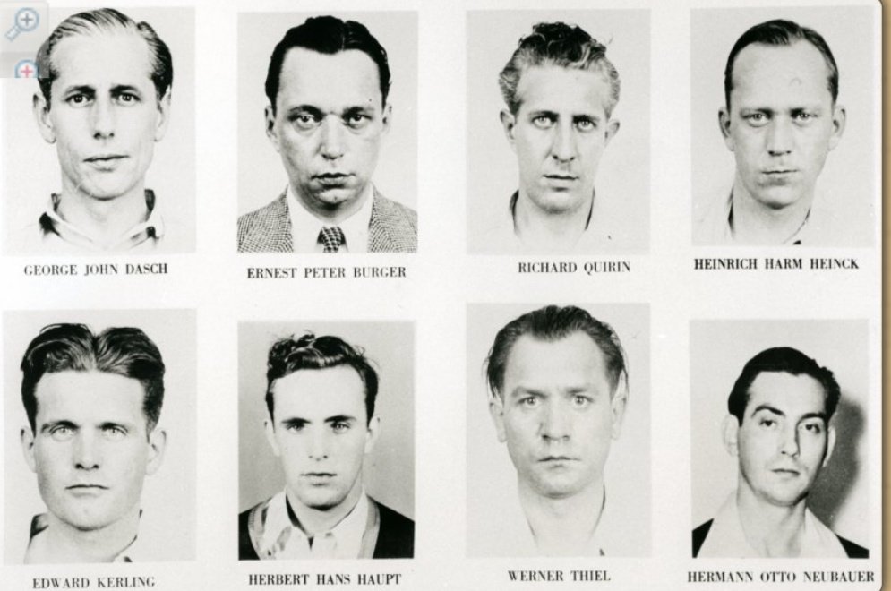 WWII en Twitter 16-Junio-1942 OPERACIÓN PASTORIUS: 🇩🇪ATACA SUELO🇺🇸 Ocho espías🇩🇪son enviados a suelo norteamericano,en dos grupos de cuatro q desembarcarian tras cruzar el Atlántico en dos U-Boots🇩🇪.Su objetivo era el sabotaje d infraestructuras básicas d🇺🇸(presas,ferrocarriles👇