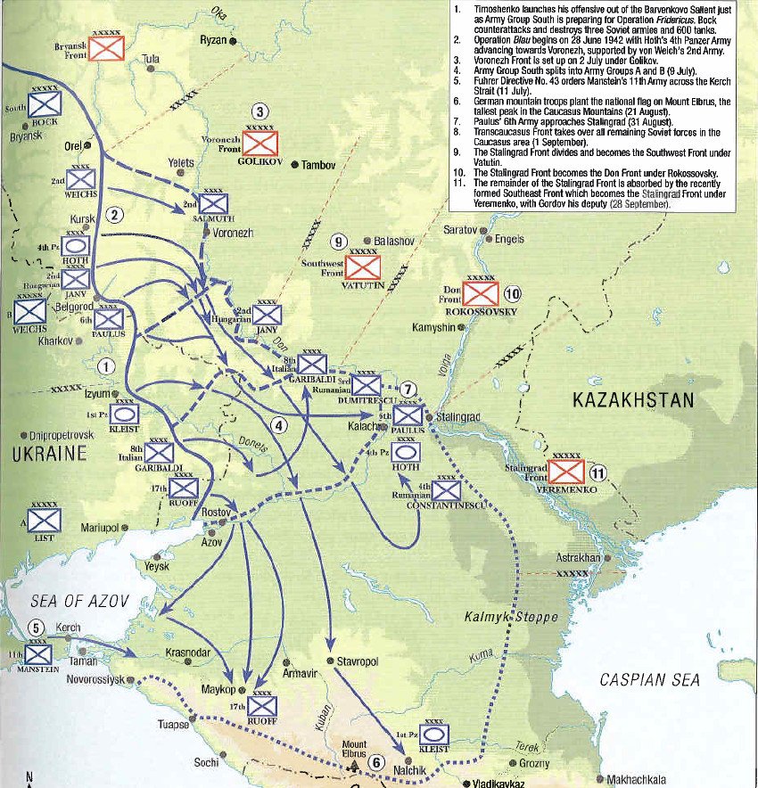 WWII en Twitter 28-Junio-1942 OPERACION AZUL: La Fall Blau(Operación Azul)era el nombre en clave de la nueva ofensiva🇩🇪contra la URSS,y arrebatarle los pozos petrolíferos del Cáucaso. Contaba para ello con 1.700.000💂🇩🇪(160.000rumanos y 200.000húngaros)2.000tanques y 2.000✈️🇩🇪👇