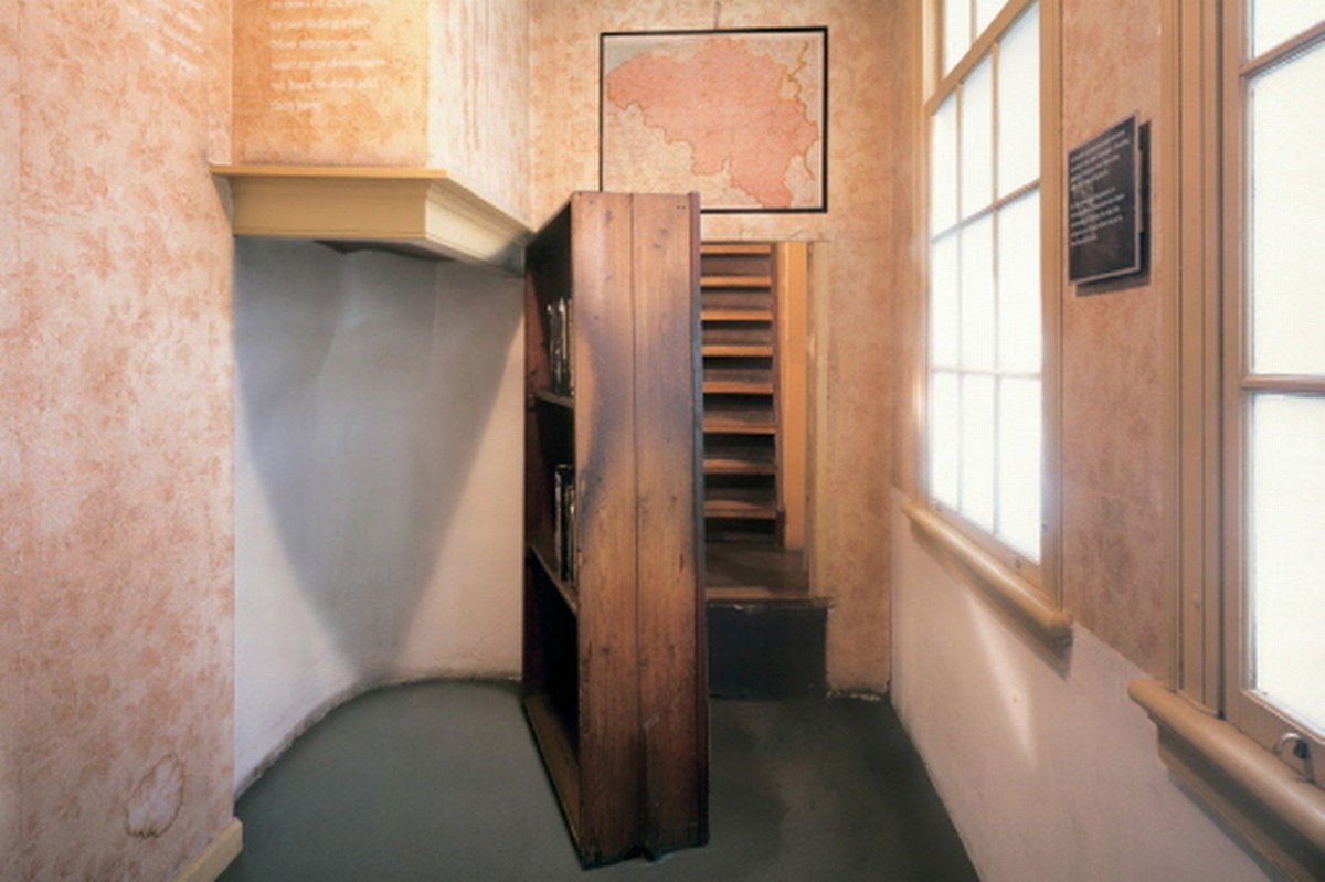 en el edificio d ls oficinas de su antigua empresa.Varios amigos y trabajadores les suministrarían lo necesario para subsitir. Ana documentaria sus vivencias en su escondite en un diario,q lo llamaría "El Diario de una Joven" y q pasaría a la historia como "El Diario d Ana Frank"