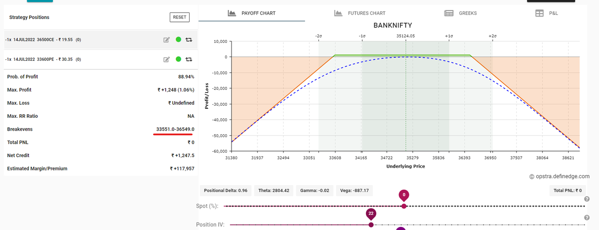 #BANKNIFTY Strategy for moderate risk seekers: Exit point: 36100 on the upside and 33900 on the downside.