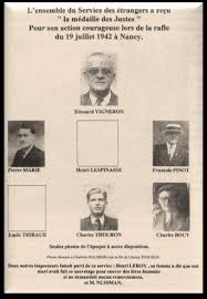 acompañados por los👮🇲🇫 a la estación,proporcionando billetes y pases para la zona libre. La redada q se produjo el 19 d Julio,sólo apresó a 32 judíos,350 consiguieron escapar.Vigneron fue arrestado por esto. Vigneron y los seis👮,pasaran a la historia como los justos de Nancy.