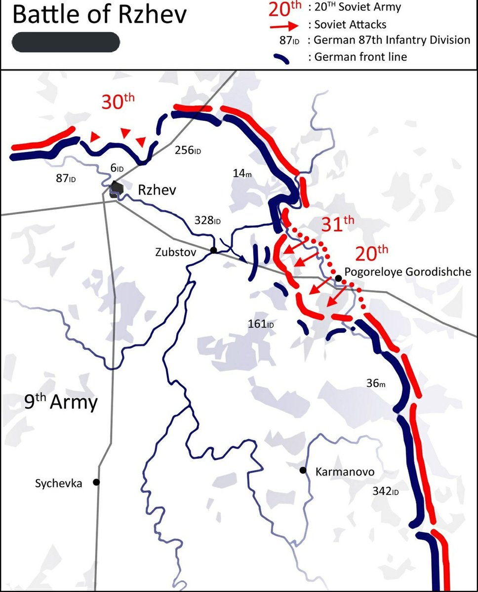 WWII en Twitter 31-Julio-1942 500000💂soviéticos inician la ofensiva en el saliente d Rzhev.Los🇩🇪fueron tomados por sorpresa,y tras unas pocas horas,la primera línea🇩🇪d ciudades fortificadas caía.El avance soviético había causado una brecha d 9km en el frente y un avance de 7km.