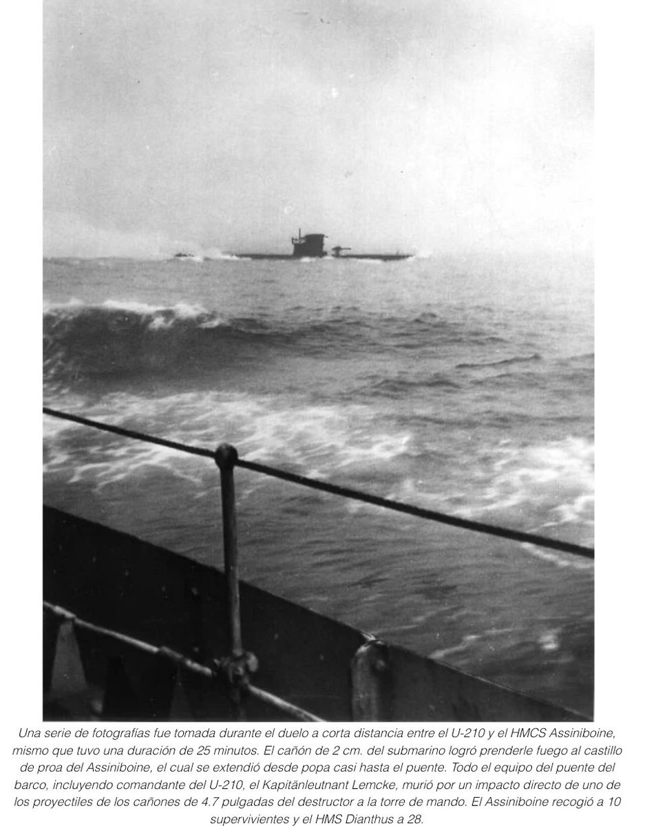 WWII en Twitter 6-Ago-1942 El U-Boot 210🇩🇪q se encontraba dentro dl alcance del convoy SC-94,el cual había zarpado desde Nueva Escocia,en Canadá,fue descubierto en la niebla por el destructor canadiense HMCS Assiniboine,iniciandose un ataque y hundiendo el U-Boot🇩🇪en el Atlántico