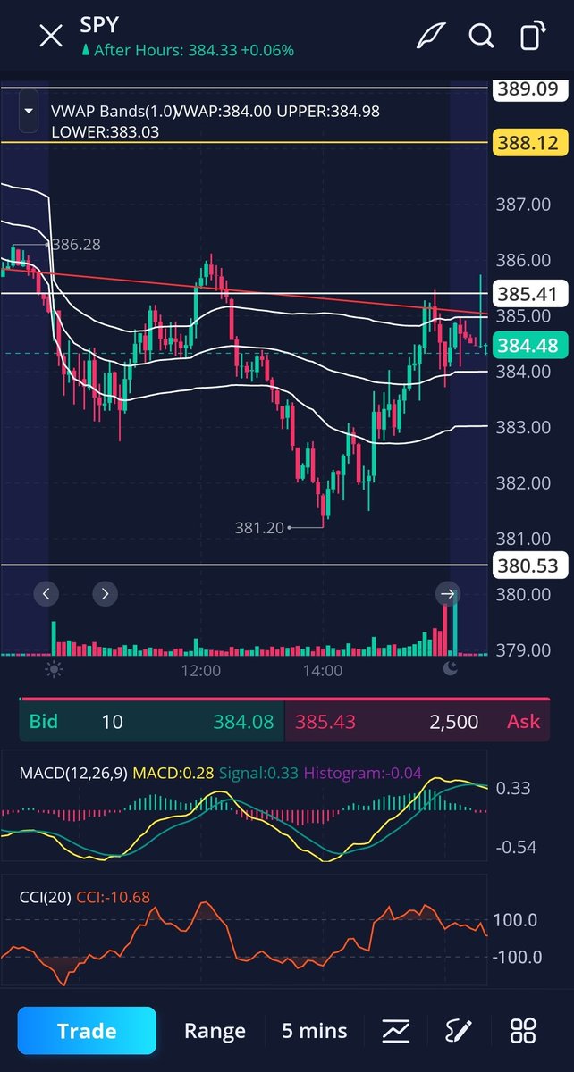 @PBInvesting Check out "VWAP Bands" some time. Kind of gives you a sense of when price is overextending on the 5, and also when the bands are angling up or down, you'll have a good idea of whether price will reject/bounce off of VWAP or cross through. Using with MACD is very powerful.