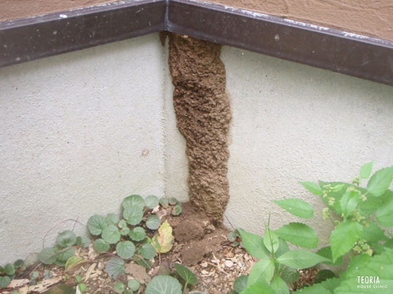 屋内への侵入する。 蟻と違ってシロアリは日光に弱いから地表で行動出来ない。 だから決死隊が土を運んで土の道を作って攻めて来るのだ。 シックイやコンクリは喰われないが木の部分まで到達したら「彼等の勝ち」である。 見上げたもんだよ。 まるで要塞攻城戦のプロだ。 駆除屋さんが「シロアリは(続)