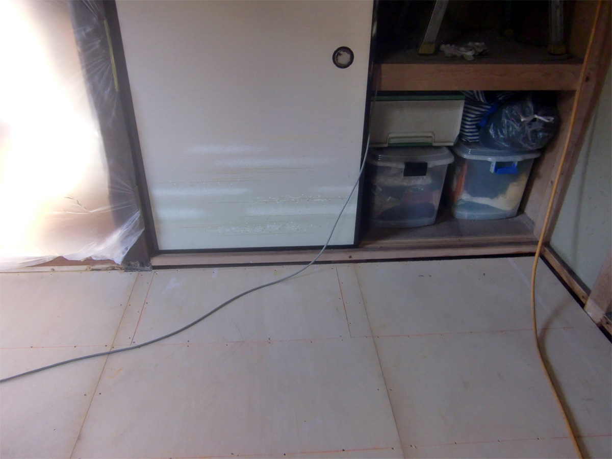 は誰かに忠言しこの被害は無駄でなかった」と思いたいのである。 でなきゃ膨大な出費に打ちひしがられ自己肯定感が低下してしまうのだ。 さて以前、シロアリは乾燥、光、振動などを嫌うので人が住み風通しと日光を入れる事が肝要だと説明した。 発覚したのはクローゼット前に置いて於いたワーク(続)