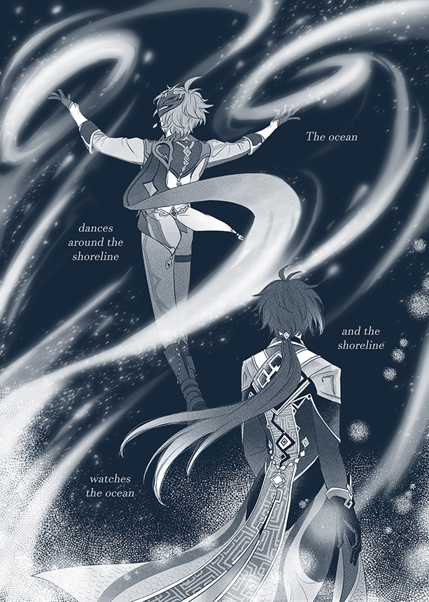 @4dango_the2nd @ResonantZine Oh my god this is BEAUTIFUL!!! This reminded me of why I loved this ship in the very first place. Dear GOD I missed how you draw them, literally made me nostalgic for your feral Childe haha! So good, thank you so much for blessing us with this