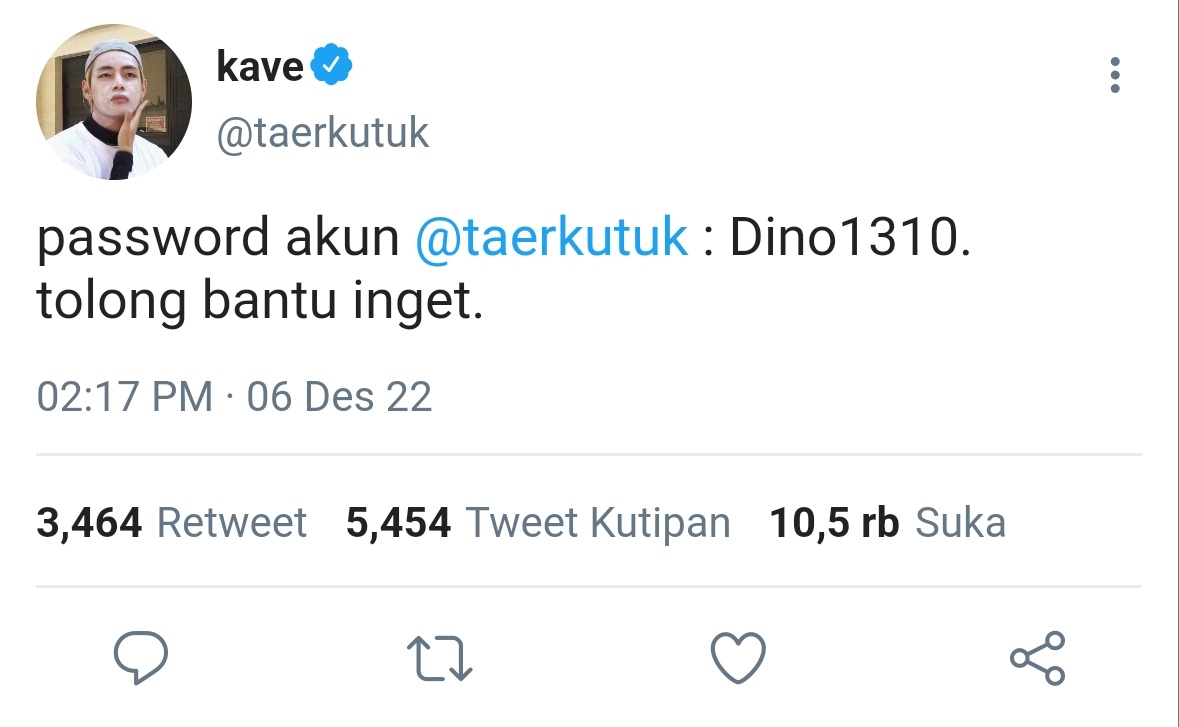 ㅤ ❝ Password ❞ Taekook AU bermula dari kata sandi twitter, berakhir dengan nomor sandi apartemen selebgram. ㅤ