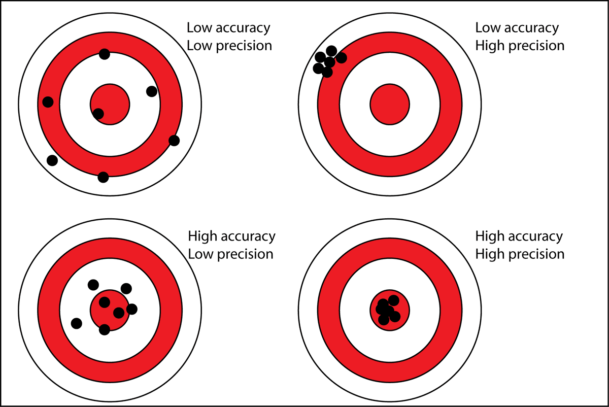 š Accuracy VS Precision You expect a metric to be both: accurate AND precise. Why? Because a metric is used to MEASURE something QUANTITATIVELY. If it's not precise AND accurate, it's not a metric.